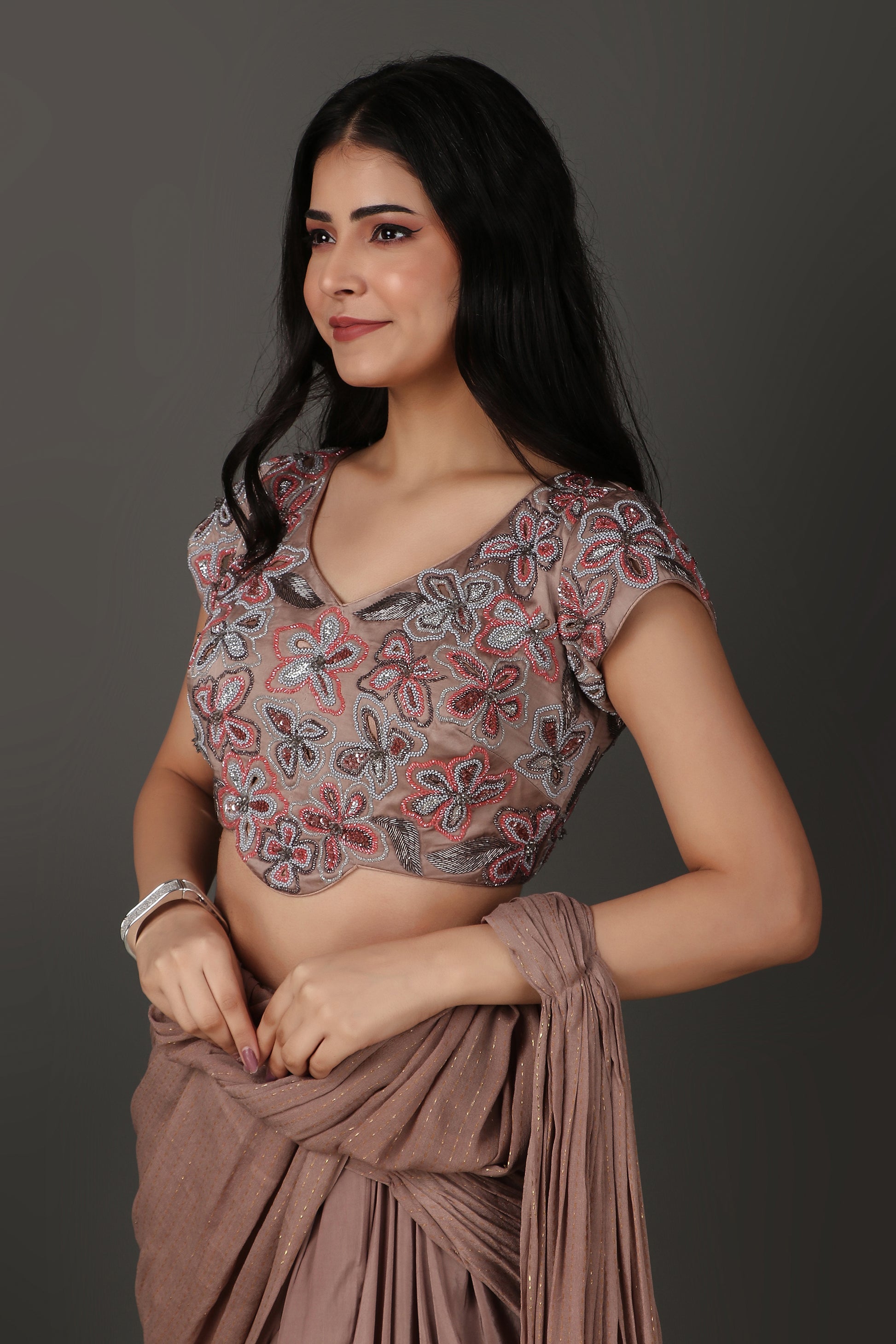 Exude elegance with this stunning mouse drape saree featuring intricate pearl, sequin, cutdana, and crystal embellishments. Perfect for weddings, formal occasions, or celebrations, this saree combines a modern drape design with timeless detailing for an eye-catching look. Crafted from high-quality materials, it offers comfort and style, making it easy to wear throughout the day or evening. The dazzling accents enhance the overall design, adding sophistication and glamour to your outfit. Whether you're a bride, a wedding guest, or attending a special event, this saree will leave a lasting impression. Make a graceful statement today!