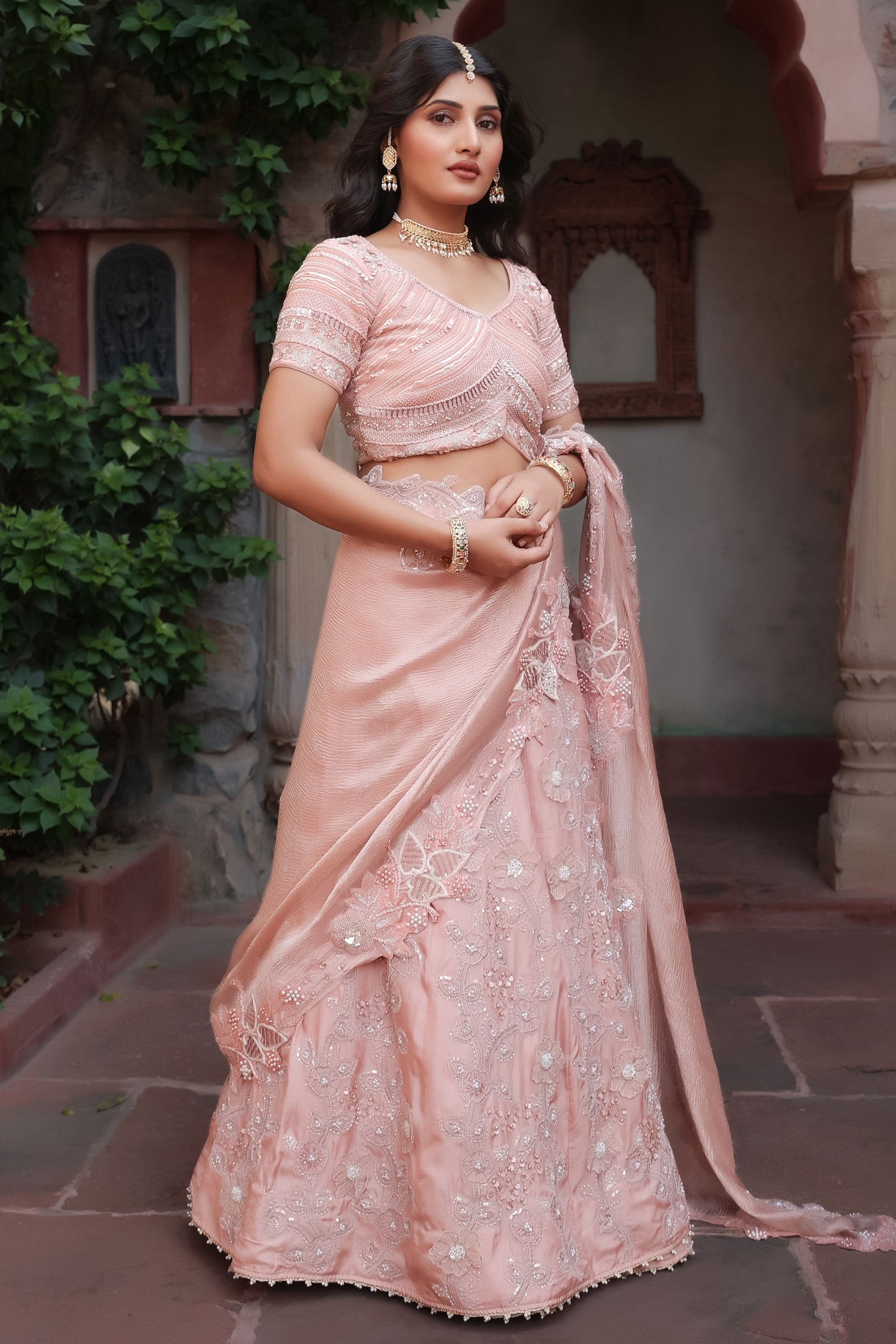 Discover timeless elegance with this stunning Rose Gold Embroidered Lehenga Saree. Adorned with intricate crystal pearl detailing and delicate cutdana work, this masterpiece effortlessly blends traditional artistry with contemporary sophistication. The shimmering rose gold hue is complemented by refined embroidery that adds a touch of grace to every occasion. Whether it’s a wedding celebration or a festive gathering, this versatile outfit is designed to make you stand out. Made with premium-quality fabric, it ensures comfort while offering a luxurious feel. Embrace sophistication and make an impression wherever you go.