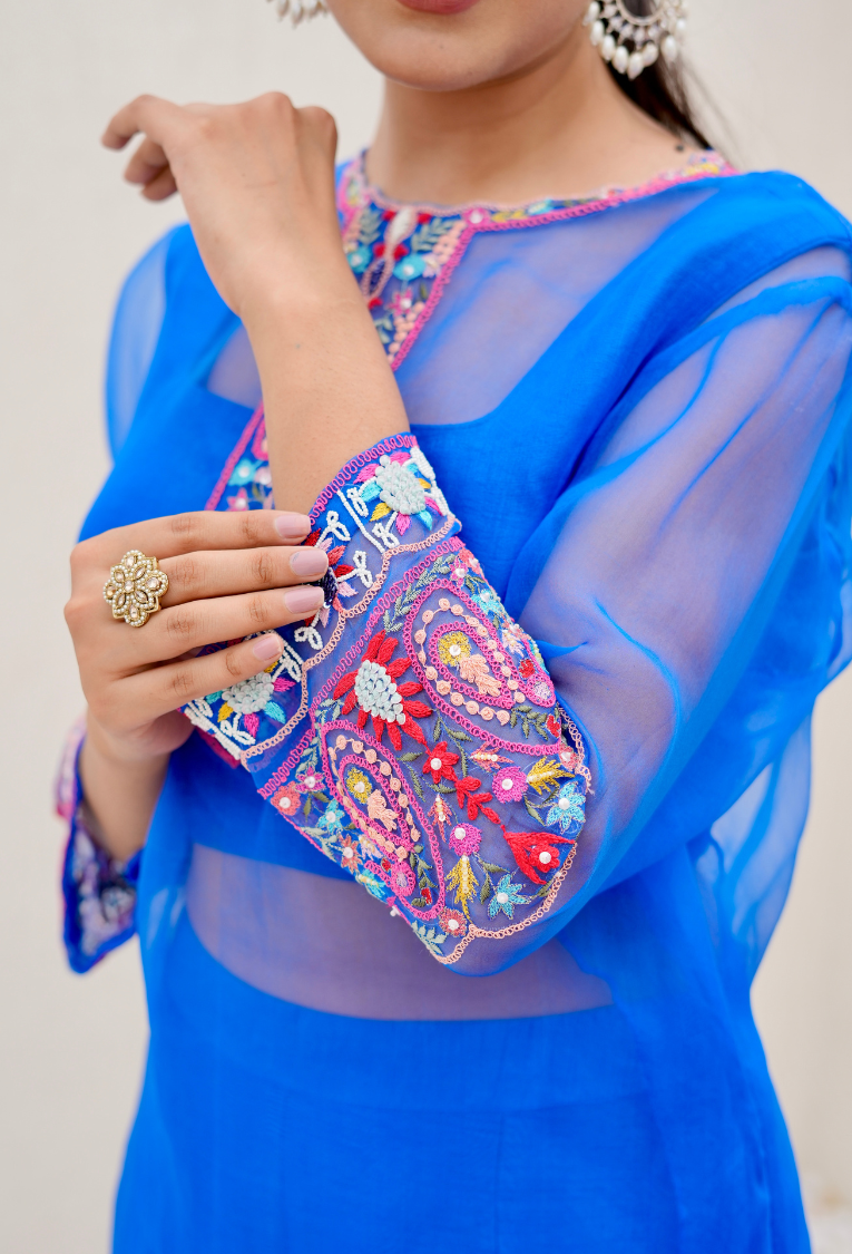 Royal Blue 3 Pc Set With Organza Kurta