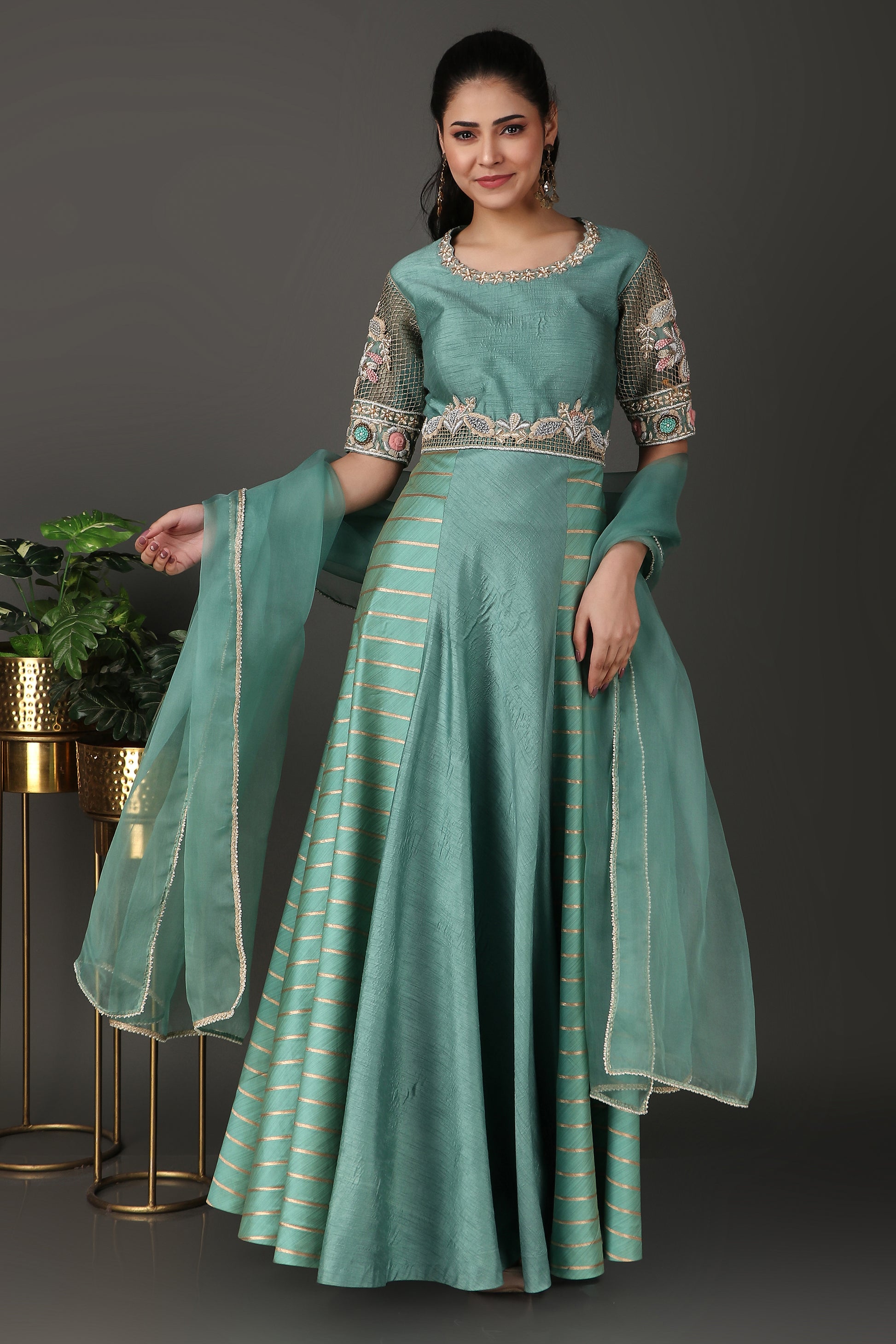 Sea Green Heavy Embroidered Anarkali Suit Set with Dupatta